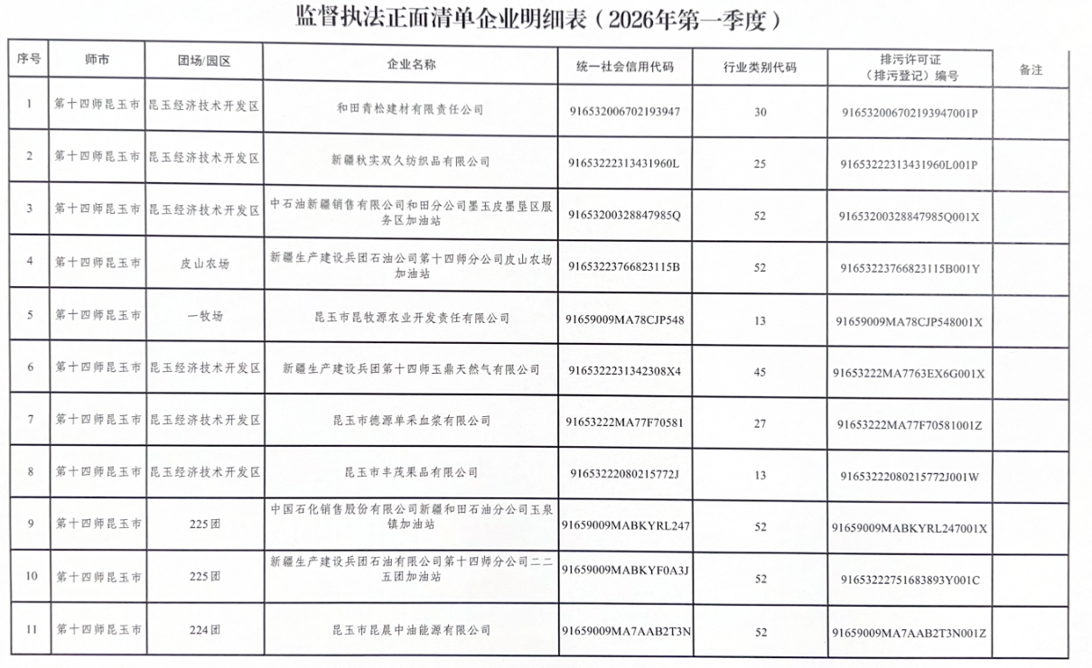 监督执法正面清单企业明细表(2026年第一季度)