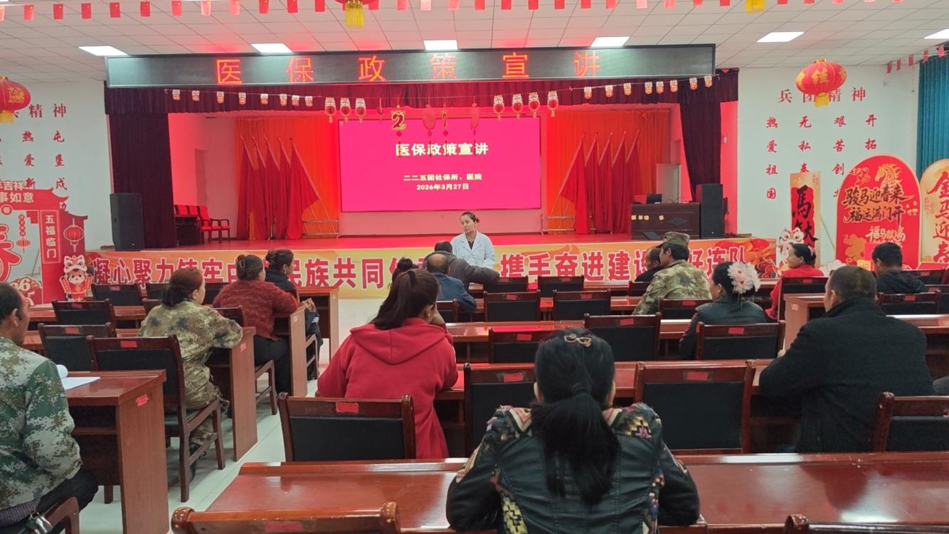 在宣讲现场,二二五团社保所工作人员赵辉与四连卫生室医生米合日奴尔·麦提努日密切配合,紧紧聚焦职工群众日常看病就医、参保缴费过程中的实际难题,着重围绕参保缴费政策、医疗报销保障、报销规则等三大关键板块,进行了全面细致的解读。
