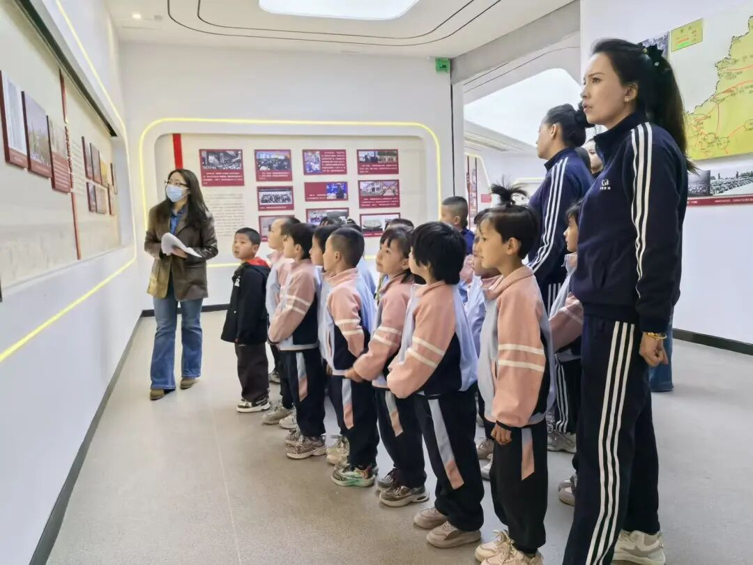 在团史馆内,孩子们在老师的带领下,认真聆听了一牧场的发展历史、兵团人屯垦戍边的奋斗故事。一张张珍贵的老照片、一件件承载岁月的实物,生动展现了兵团人扎根边疆、奉献边疆的精神,也让孩子们直观感受到了兵地一家亲的深厚情谊。讲解员围绕团史内容,结合幼儿年龄特点,用通俗易懂的语言,引导孩子们了解兵团精神、感悟民族团结的重要意义,在幼小的心灵里播下爱党爱国、团结互助的种子。