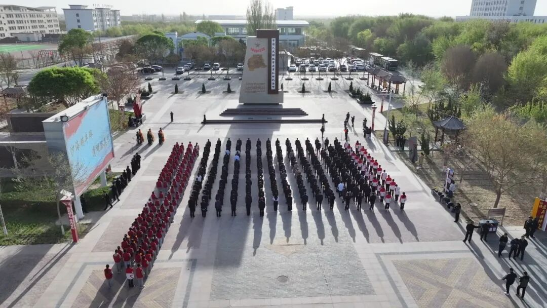 上午10时,纪念活动正式开始。全体人员整齐列队、庄严肃立,向纪念碑三鞠躬,追思革命先烈的丰功伟绩。少先队员与西部计划志愿者组成献词方阵,朗诵《老兵歌》、歌唱《如愿》,用真挚情感表达对先烈的无限敬仰。随后,全体人员依次敬献鲜花、绕行瞻仰纪念碑,并集体参观和田博物馆流动展与中国人民解放军进军和田纪念馆。通过图文展板、历史实物、影像资料,重温老兵们铸剑为犁、建设边疆的峥嵘岁月,进一步铸牢中华民族共同体意识。