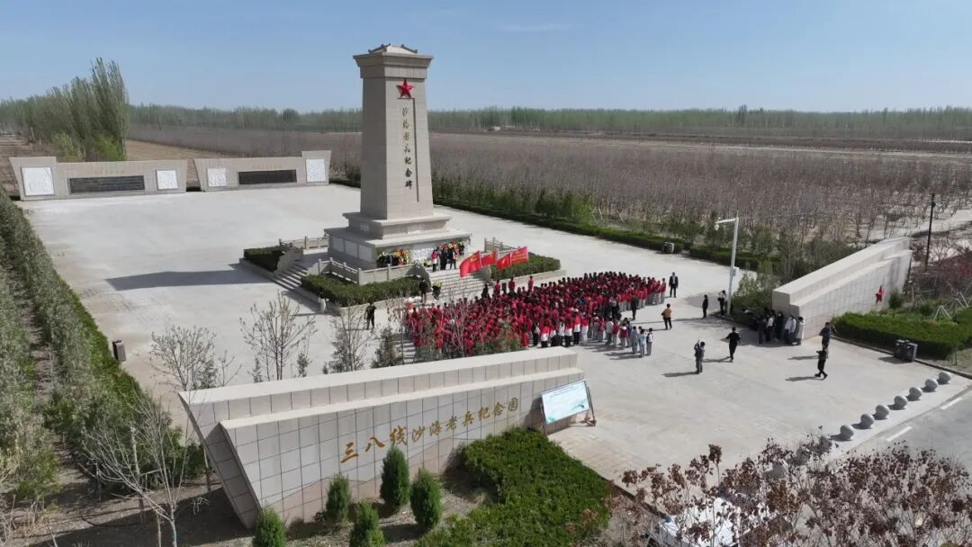 在“三八线”沙海老兵纪念园,480名师生徒步抵达纪念园,举行祭扫仪式。大家集体奏唱国歌、敬献花篮、重温入队入团誓词,聆听老兵事迹,现场接受爱国主义教育,让红色基因在青少年心中扎根传承。