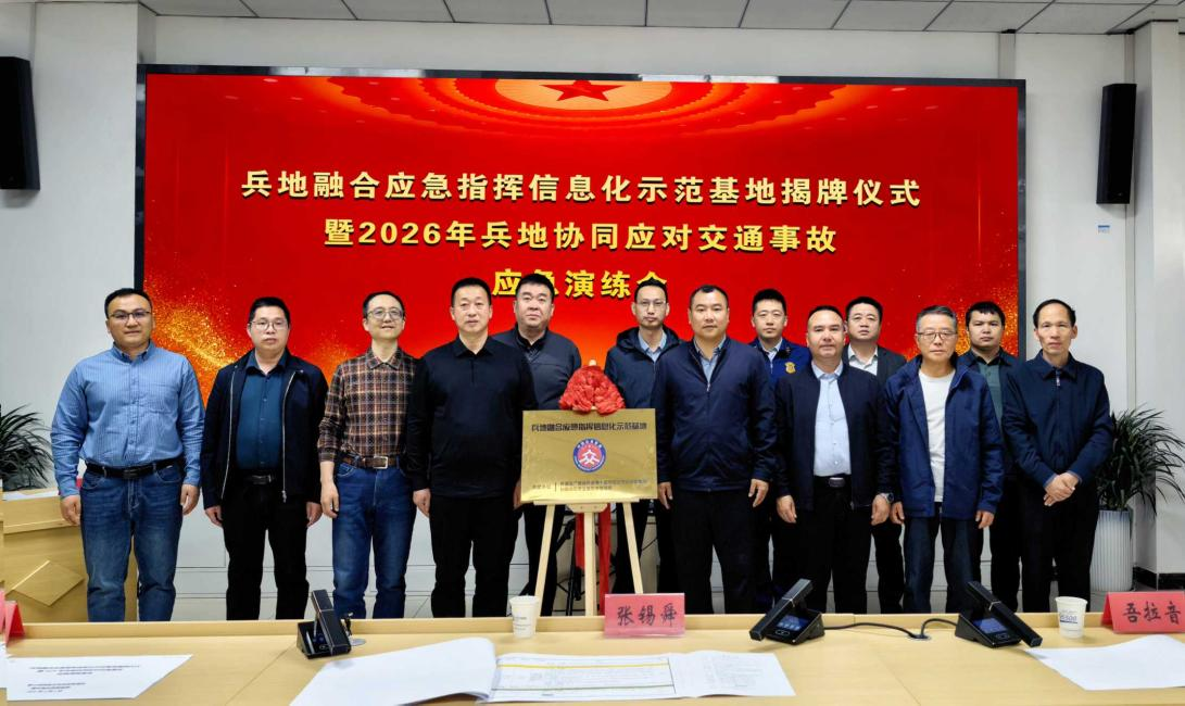 近日,兵地融合应急指挥信息化示范基地揭牌仪式暨2026年兵地协同应对交通事故应急演练在第十四师昆玉市应急管理局应急指挥中心举行。