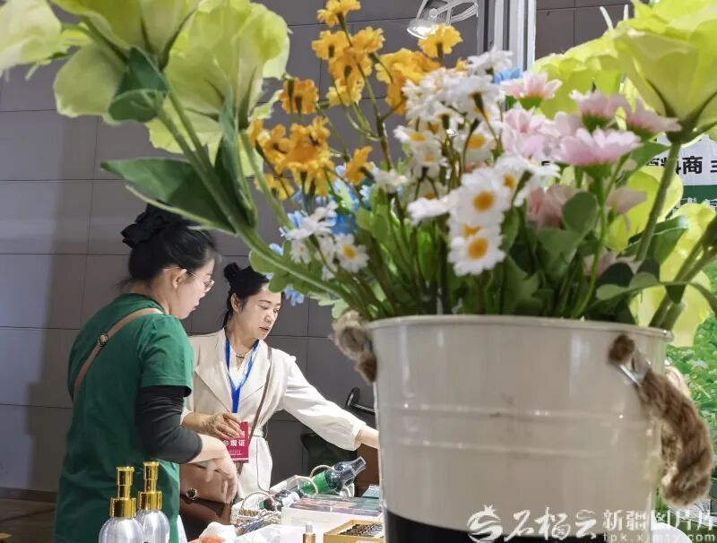 4月9日,市民在博览会上选购商品。