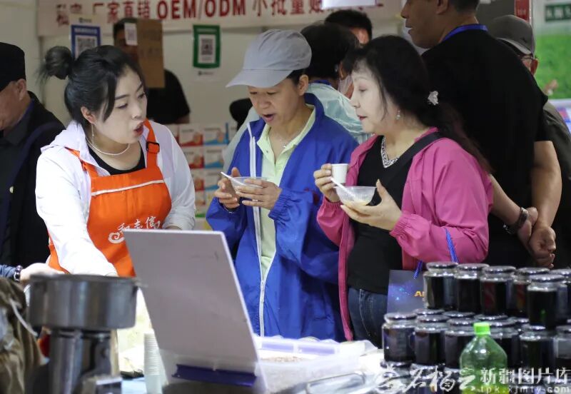 4月9日,市民在博览会上品尝养生饮品。