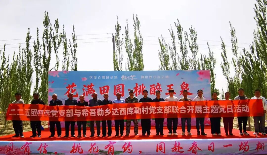 春风送暖,桃花盛开。为丰富职工群众精神文化生活,深入践行兵地一盘棋思想,深化兵地融合发展,以党建引领乡村振兴,在二二五团党委的坚强领导下,以及新疆艺术剧院歌舞团的大力支持下,2026年4月11日,二二五团四连党支部联合达西库勒村党支部成功举办桃花节暨主题党日活动。