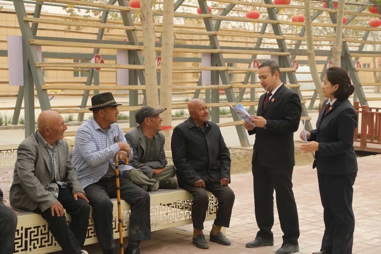 4月9日,在皮山农场农贸市场,干警们设置咨询点、发放宣传单,围绕2026年国家安全主题,详细解读总体国家安全观“十个坚持”、危害国家安全行为界定、公民权利义务等内容,活动覆盖职工群众500余人。