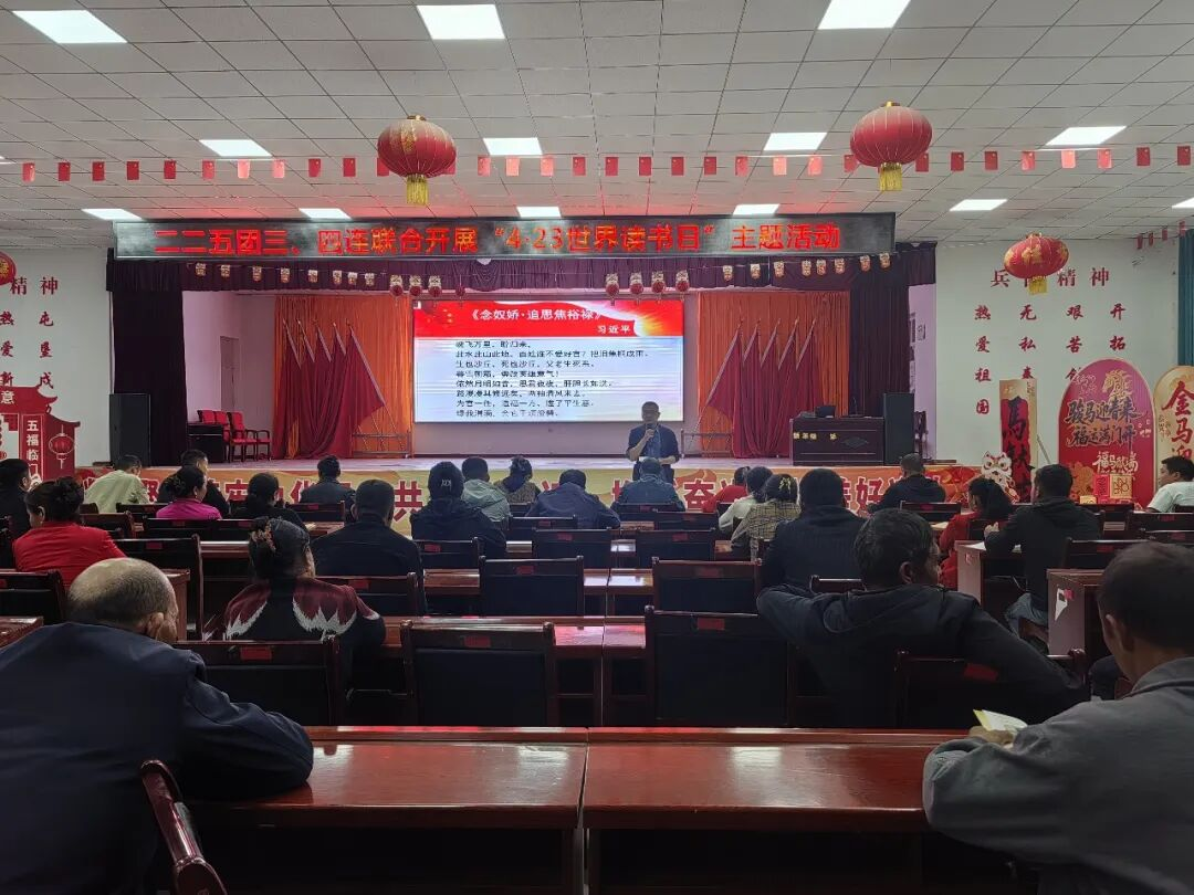 为深入学习贯彻习近平文化思想,扎实推进全民阅读工作,筑牢基层文化阵地,在第29个“世界读书日”来临之际,二二五团四连党支部与三连党支部联合在新时代文明实践站开展“书香润初心 阅读践担当”主题联建读书活动。60余名党员、职工群众齐聚一堂,共沐书香、互学共进,以文化之力凝聚连队发展强大合力。