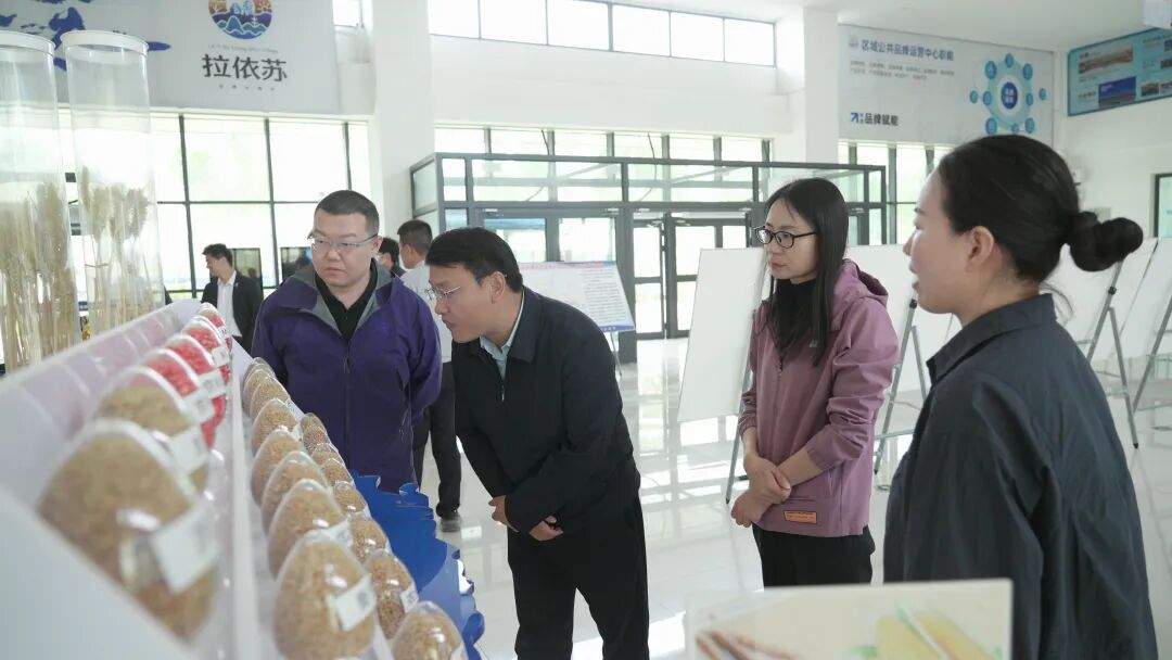 在矮砧密植苹果示范园,调研组详细询问果园日常养护管理技术、种植规模、产量效益及市场销售等情况,与现场负责人就果园精细化管理、产销对接等关键环节进行深入研讨。在羊脂籽米种植基地,调研组实地察看水稻长势与种植模式,细致了解基地种植规模、生产流程及产业发展规划,对二二五团依托地域优势发展特色产业的成效给予充分肯定。随后,调研组走进“拉依苏”区域公共品牌运营中心,认真听取二二五团整体产业发展规划介绍,了解团场特色农副产品品类、品质及品牌培育情况,全面掌握农产品产销全链条发展态势。