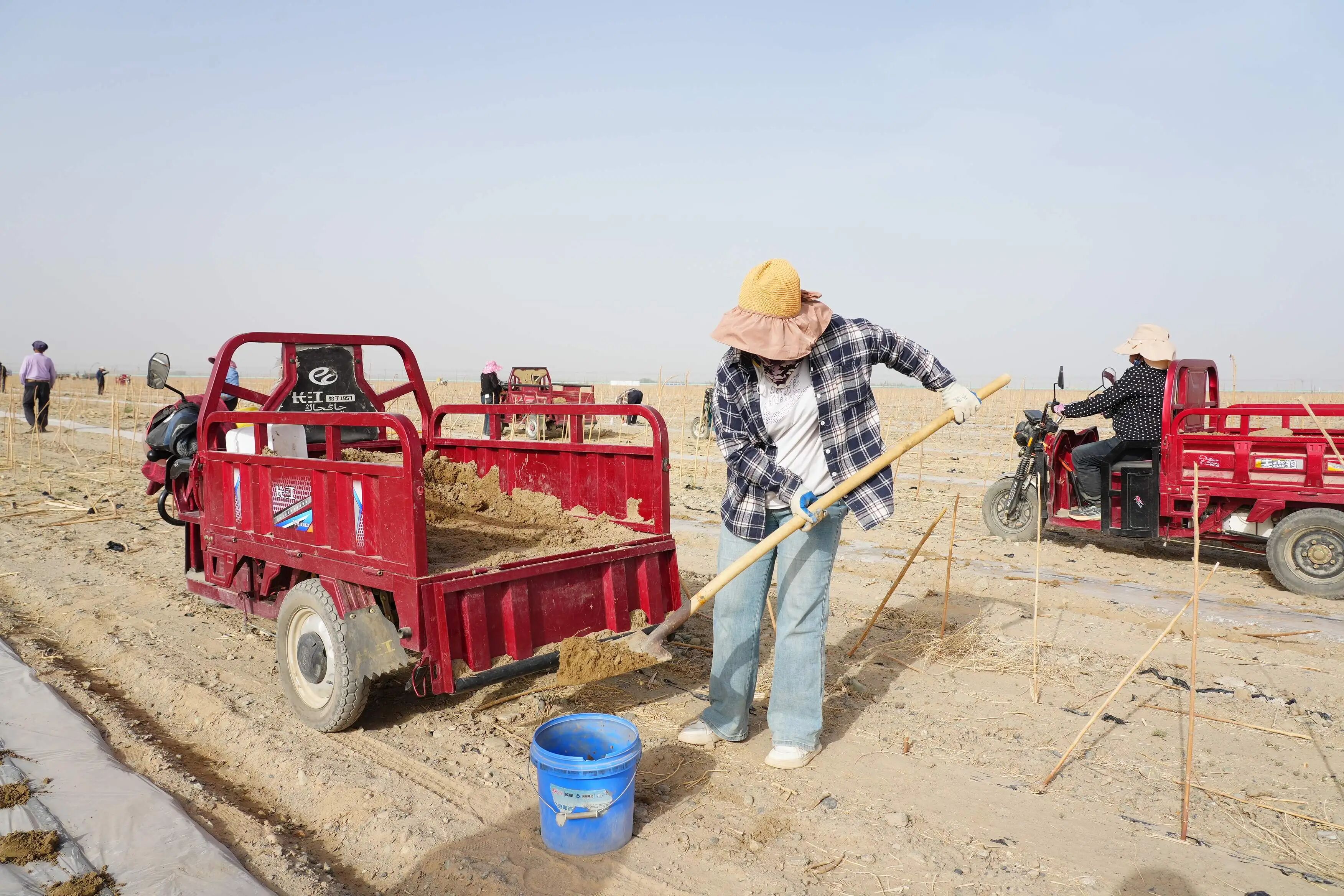 十四师二二五团塔克拉玛干沙漠四万亩锁边配套工程项目现场。严莉 摄