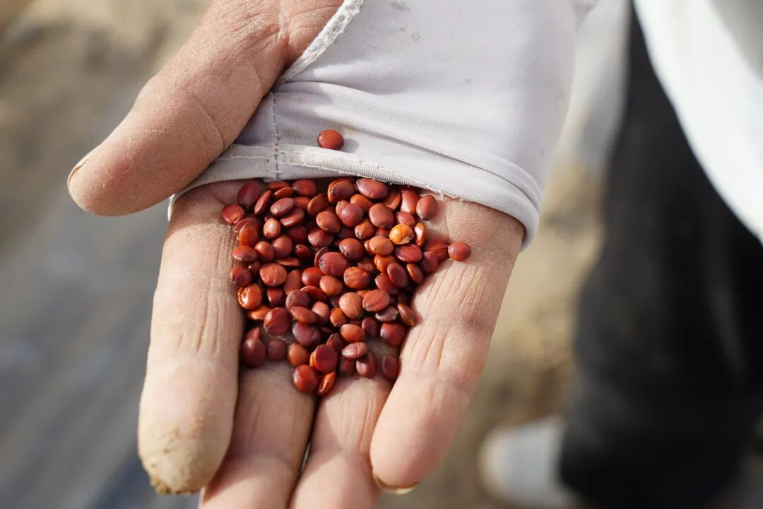 在7200余亩酸枣种植现场,团场70余名护林员分片作业、分工协作,有序开展挖坑、播种、覆土全流程标准化作业,严格把控播种间距、深度等关键环节。二二五团七连连长肖涵说:“目前,我们已高标准完成酸枣播种面积1000余亩,树苗整体长势平稳向好,为后续苗木生长筑牢基础。”