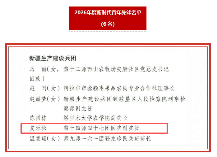 艾乐松获2026年度新时代青年先锋