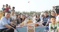 “来来来!刚出锅的羊汤来了。”“尝一尝,这是我做的抓饭,焖得香香的!”“这大盘鸡,我炖了一下午!”6月16日,古尔邦节到来之际,在昆玉市玉园镇和泰新区文化广场,各族群众围坐在一起,你一句我一句唠着家常,他们身前摆放着从家里带来的美味菜品以及馓子、瓜子、糖果等,一家一桌,连成四列百米长龙。活动现场,群众围坐在一起欣赏节目。石榴云/新疆日报记者 司路路摄这...