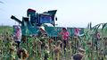 春种一粒粟,秋收万颗子。立秋过后,金黄遍野,二二四团一望无际的向日葵进入收获期,丰收的向日葵成为乡间田野一道靓丽的风景线。走进第十四师昆玉市二二四团一连职工孙新胜的向日葵地中,现场机器轰鸣,采收、运输车辆来回穿梭,五六名职工一字排开,走在脱粒车的前方,他们分工协作,熟练地将已晒干的向日葵盘投进收割机脱粒收获。经过脱粒后的葵花籽被运送到挑选处挑选。“...
