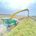 8月中旬,第十四师二二五团种植的1.5万亩青贮玉米迎来收获时节,连片的青贮玉米长势喜人,一台台大型联合收割机正在玉米地里来回穿梭,群众正忙着收割、装车,运往津垦牧业交售。处处是农户热火朝天收获青贮玉米的忙碌景象。近年来,二二五团合理规划土地,变小块地为大条田,提高了土地利用率和产收率。推进草畜一体化发展,与于田县优势互补资源共享,为津垦牧业提供优质饲草...
