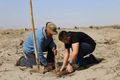 在古尔班通古特沙漠边缘的六师红旗农场附近,有一片宽约4米、绵延10余公里的梭梭林。从高空俯瞰,这条林带宛如一道牢固的城墙,将沙漠与农田隔开,守护着职工群众的家园。每当提起这片梭梭林,红旗农场的职工群众总会说起三连退休职工马献民的故事。3月16日,马献民(左)与工人一起栽植梭梭苗木。朱秀琴 摄 红旗农场多个连队分布在古尔班通古特沙漠东西沿线。以前,由于风沙...